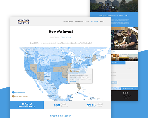 The human-centered approach transformed perception without requiring full rebrand investment or sacrificing established recognition. Search campaigns successfully reached entrepreneurs, farmers, and family businesses previously unreachable through traditional investment marketing. Direct contact integration at strategic touchpoints converted hesitant visitors into engaged prospects. The website became a trust-building tool that prepared potential partners for productive first meetings, effectively reintroducing Advantage Capital to underserved communities nationwide while maintaining institutional credibility.