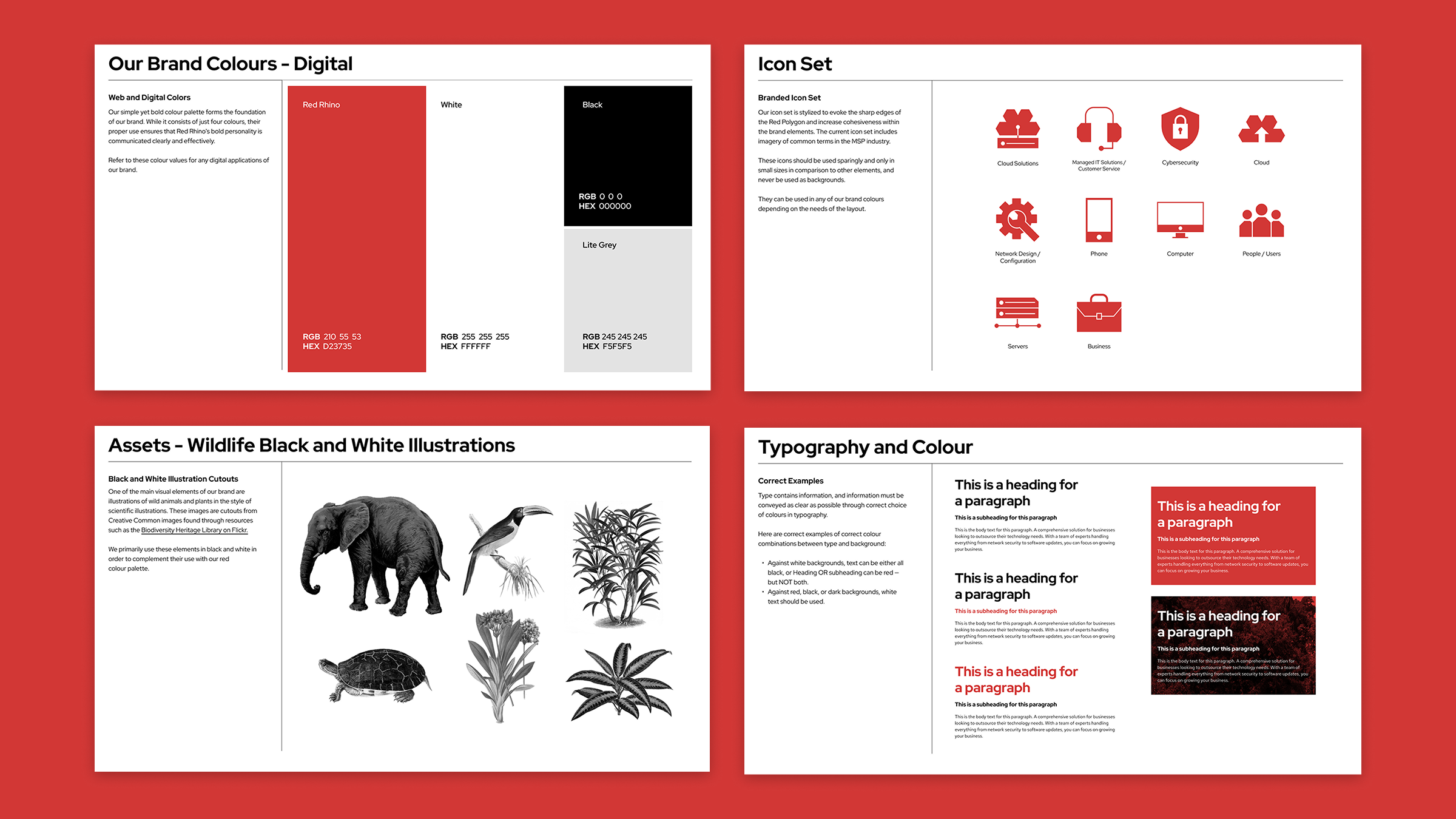 The new brand provided the foundation for a messaging framework based on the company's foundational values โ positioning Red Rhino as a partner in the safari โ evoking feelings of safety and security with clients who are now able to explore this jungle and grow their business with the confidence of knowing that they are supported by a true guide.