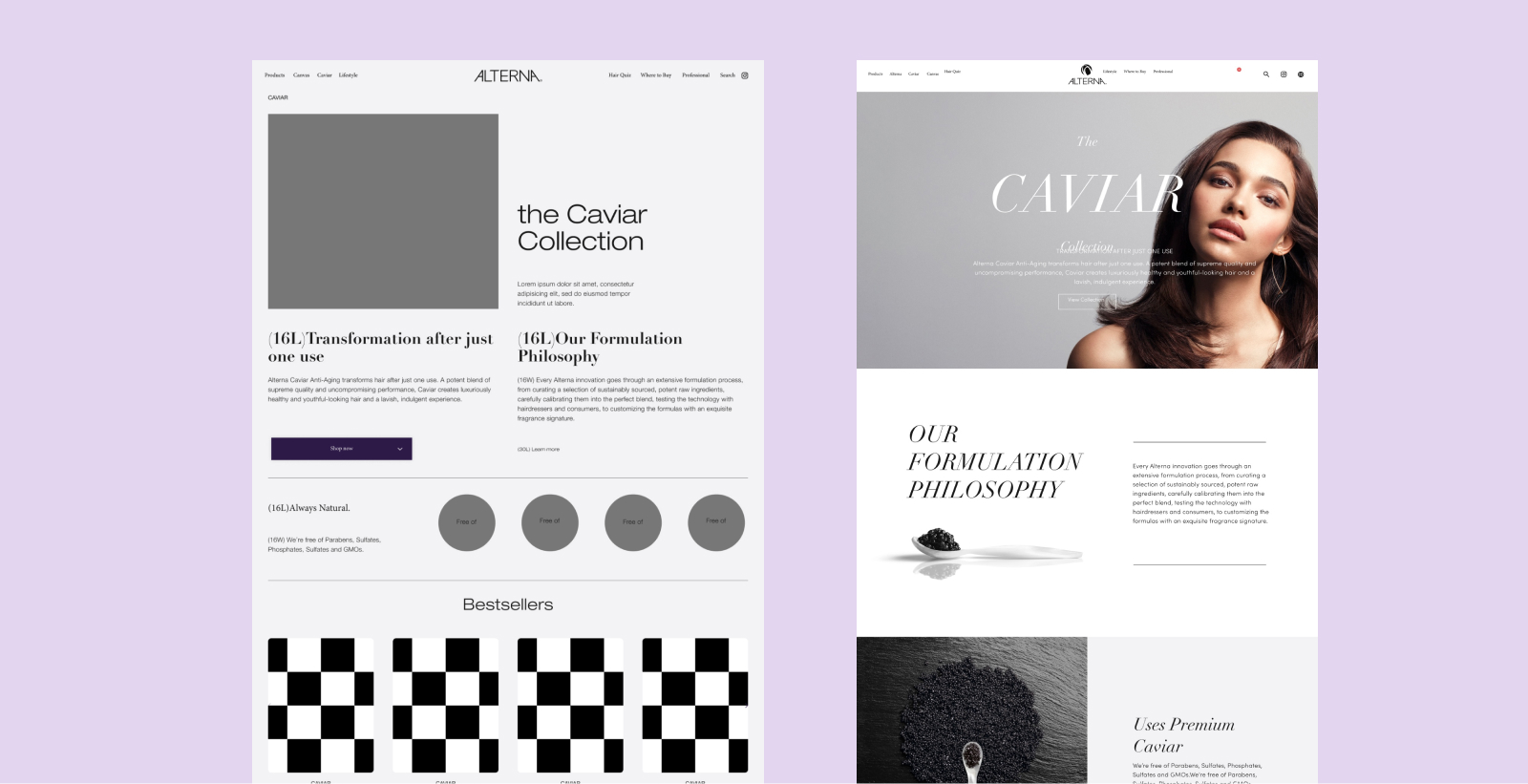 We redesigned Alterna Haircare's website, creating a branded product journey that guided customers to retail partners, while improving content management and enabling continuous evolution through a flexible, headless development approach.