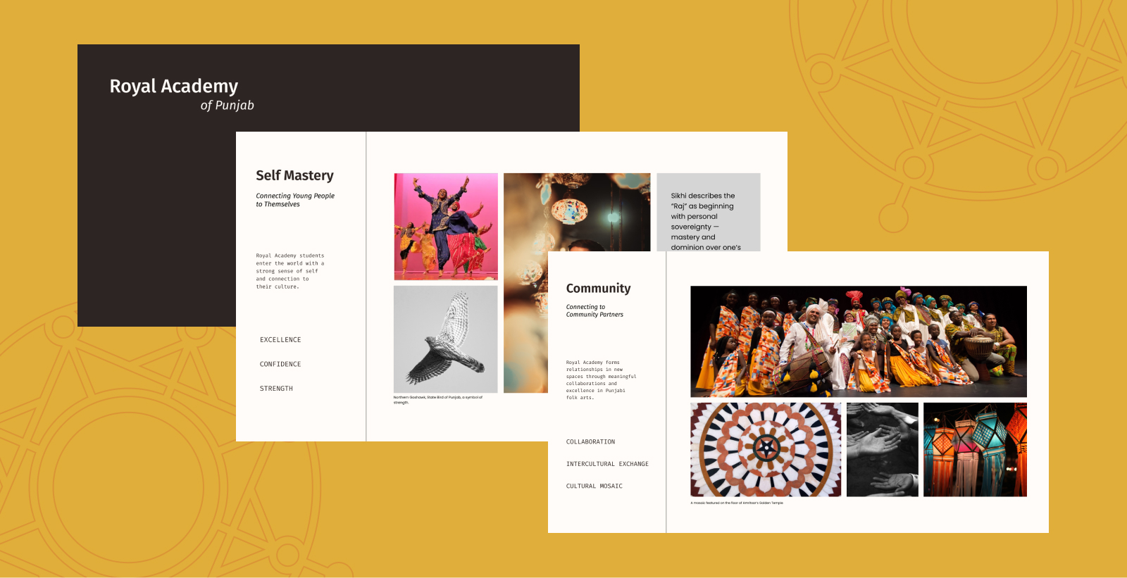 The relaunched brand was met with enthusiasm from both the community and new audiences, effectively reflecting the academy’s expanded mission. The new identity not only solidified the academy’s cultural influence but also positioned it for long-term growth, garnering increased support from government funders and community partners.The Royal Academy of Punjab successfully transitioned from a grassroots dance school into a cultural institution with a broader purpose, securing its legacy and ensuring its capacity to inspire future generations with the richness of Punjabi culture.