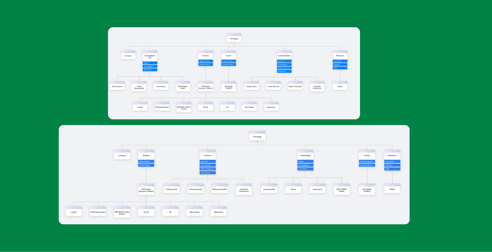 We embarked on a journey to transform West Fraser's online presence, guided by our core principles of clarity, action, and purpose. Our first step was to conduct a thorough analysis of the existing website, identifying pain points and opportunities for improvement. We delved deep into the needs of West Fraser's diverse audiences, understanding their online behaviours and information requirements.Armed with these insights, we crafted a comprehensive strategy to revitalize the website's architecture, content, and design. Our approach centred on simplifying the navigation structure, making it intuitive and user-friendly for all audiences. We also prioritized enhancing the site's SEO, ensuring West Fraser's online visibility and reach were maximized. Finally, we implemented accessibility best practices, making the website inclusive and welcoming to everyone.Based on our findings, we developed a new information architecture that prioritized clarity and ease of use. We reorganized the site's content, simplified navigation, and implemented a user-friendly search function.