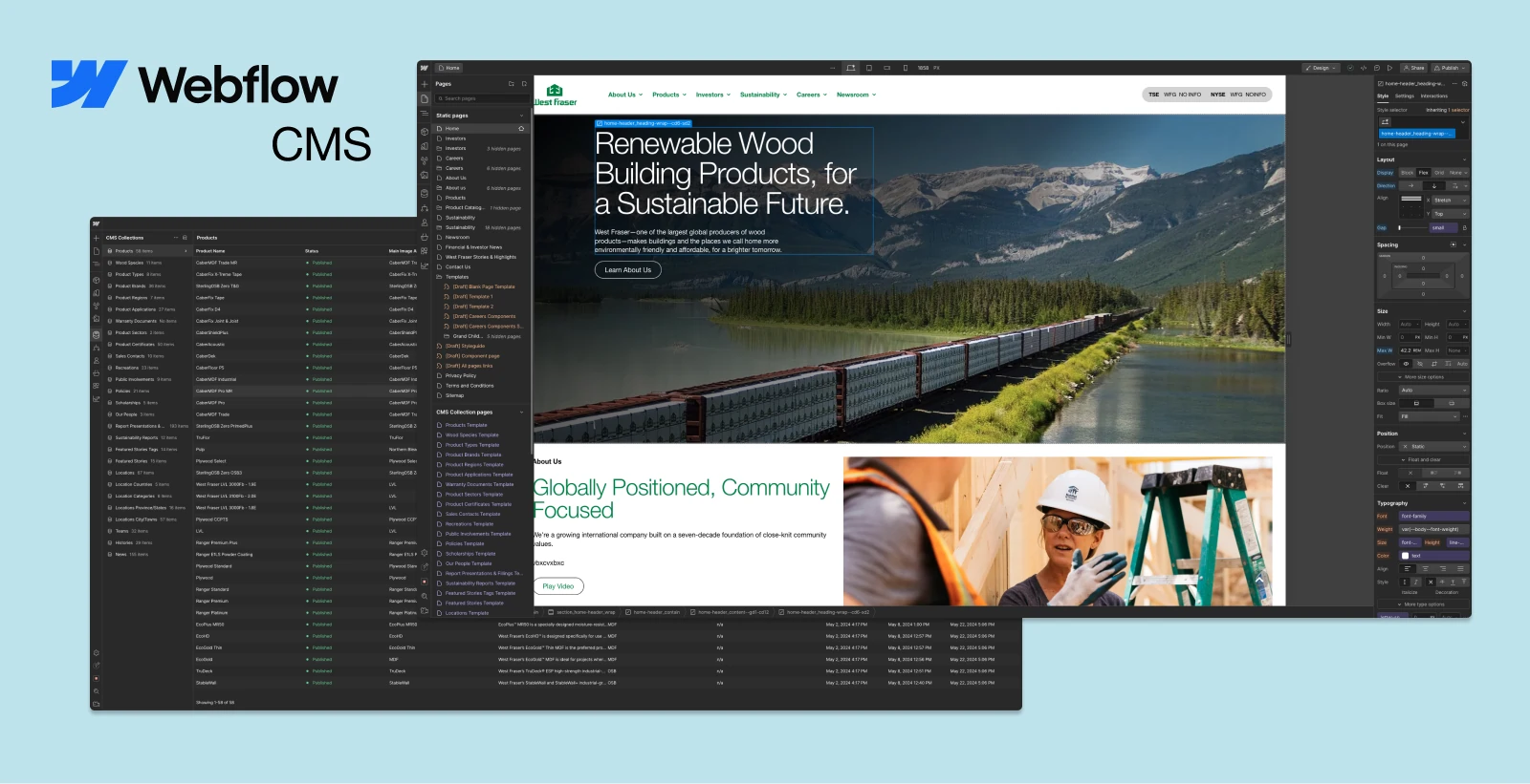To meet West Fraser's needs, we leveraged the power and flexibility of Webflow CMS. We designed and developed a custom website with a user-friendly interface and a robust content management system.By creating custom templates and establishing clear content relationships within the CMS, we ensured that West Fraser could easily manage and update their website content. This approach streamlined their workflow and empowered them to maintain an engaging online presence.
